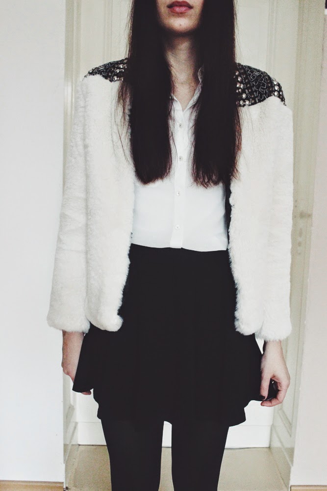 Die Jacke ist von www.choies.com und sah auf dem Foto ein bisschen fülliger aus, daher habe ich sie nur in Größe M genommen, leider finde ich, dass sie mir jetzt nen ticken zu klein ist. Also wieder das leidige Thema mit den zu kleinen China Sachen. Es geht aber trotzdem noch, man kann sie definitiv tragen und habe in dem Format auch noch keine Jacke gesehen. Das falsche Fell ist wahnsinnig weich, hab mich mehrmals dabei erwischt, wie ich die Jacke gestreichelt hab. Merkwürdig, ich weiß, aber sie ist echt super weich.